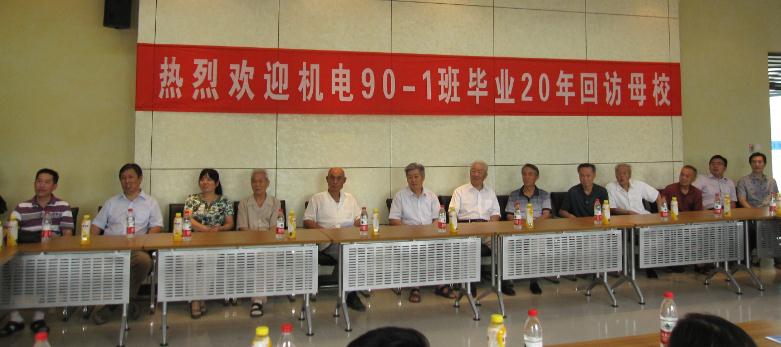 2012年8月17日,机电90-1班35名校友毕业20年回访母校,在建筑技术馆会议室里,与老教师们欢聚一堂,共同纪念毕业20周年。校友们与机电学院领导及当年任课教师:田顺喜、郭宪宇、张天熙、许庆堂、温德、陆望高、张振广、樊奎英、康力、史俊青等热情座谈,合影留念,共同回忆20年前在母校学习、生活的点点滴滴。机电90-1班向机电学院赠送了纪念品。