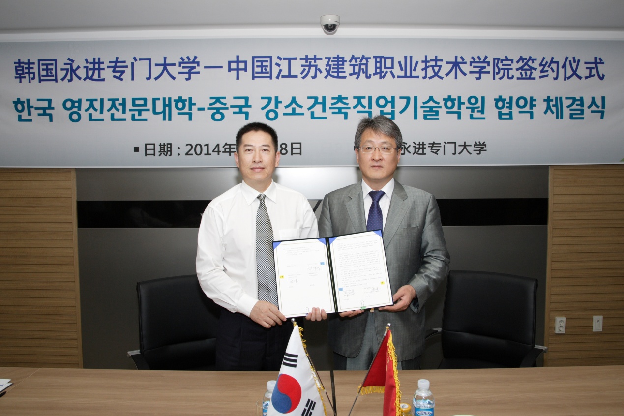 2013年11月,韩国永进专门大学的机电系曾俊教授来我校交流,就与机电学院的机械制造与自动化专业合作办学事宜先期进行了初步的调研与咨询。两所院校经过半年的沟通与协商,现于7月份正式达成合作意向并签署合作协议。“2 1”的合作模式是指,高考录取到我校的学生,前两年在我校读机械制造与自动化专业,第三年有留学韩国意向的学生,可赴永进专门大学修读一年专业课程,学生修满要求的学分达到两校毕业要求的可获得两所学校的毕业证;不想出国的学生可继续在我校就读,完成课程及学分后即可毕业并获得我校颁发的毕业证。
