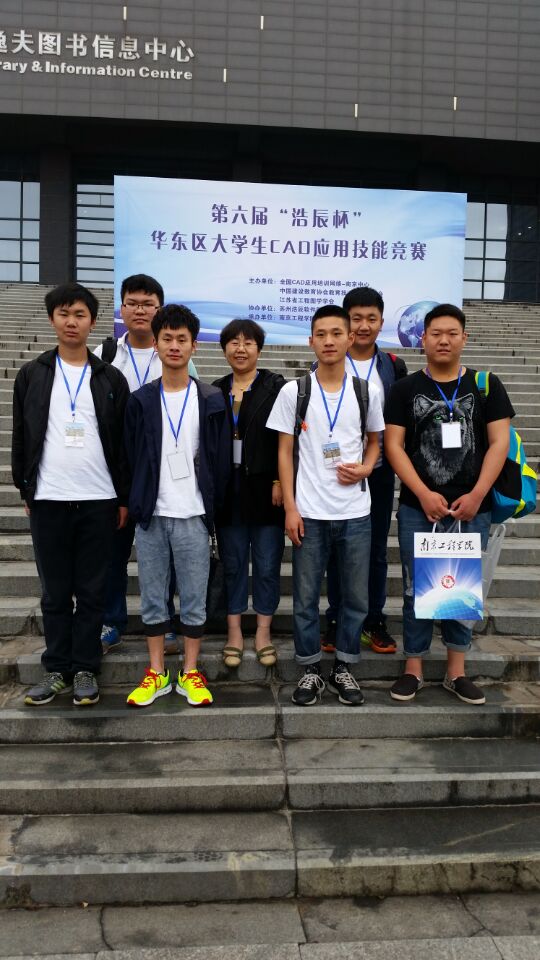 本次大赛共设置机械工程图绘制竞赛、机械三维数字建模、建筑工程图绘制三个竞赛项目。华东区八个省市,近百所高校,通过预赛选出1200余名参赛选手参加了本次竞赛。在安淑女和吴虎城两位老师的精心组织与指导下,我校成立了以龚璐、徐帅、邱培俭、李国强、陈欢、史京成6位同学组成的代表队参赛团体与个人。