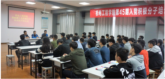 2017年10月25日下午4:30,机电工程学院第45期党校培训开班仪式在机电工业中心202举行。机电学院党总支书记、分党校校长潘峰同志、教工支部委员黄培老师出席仪式,参加此次开班仪式的还有机电学院辅导员和分党校全体学员。