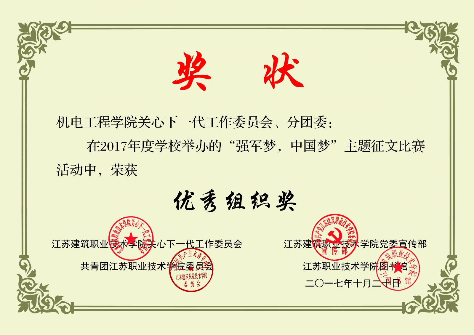 热烈祝贺151amjs澳金沙门关心下一代工作委员会、分团委获得2017“强军梦,中国梦”主题征文比赛活动优秀组织奖