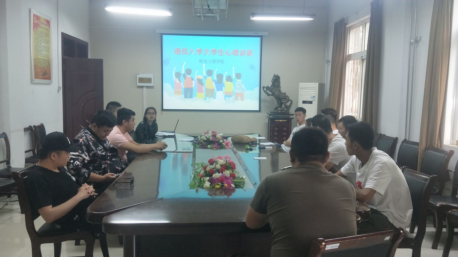 5月23日中午在机电会议室,心理健康郭利老师组织召开了以“敞开心扉 拥抱大学”为主题的17级退役士兵心理座谈会。来自机电一体化技术专业和汽车检测与维修技术专业的16位退役士兵学生参加。