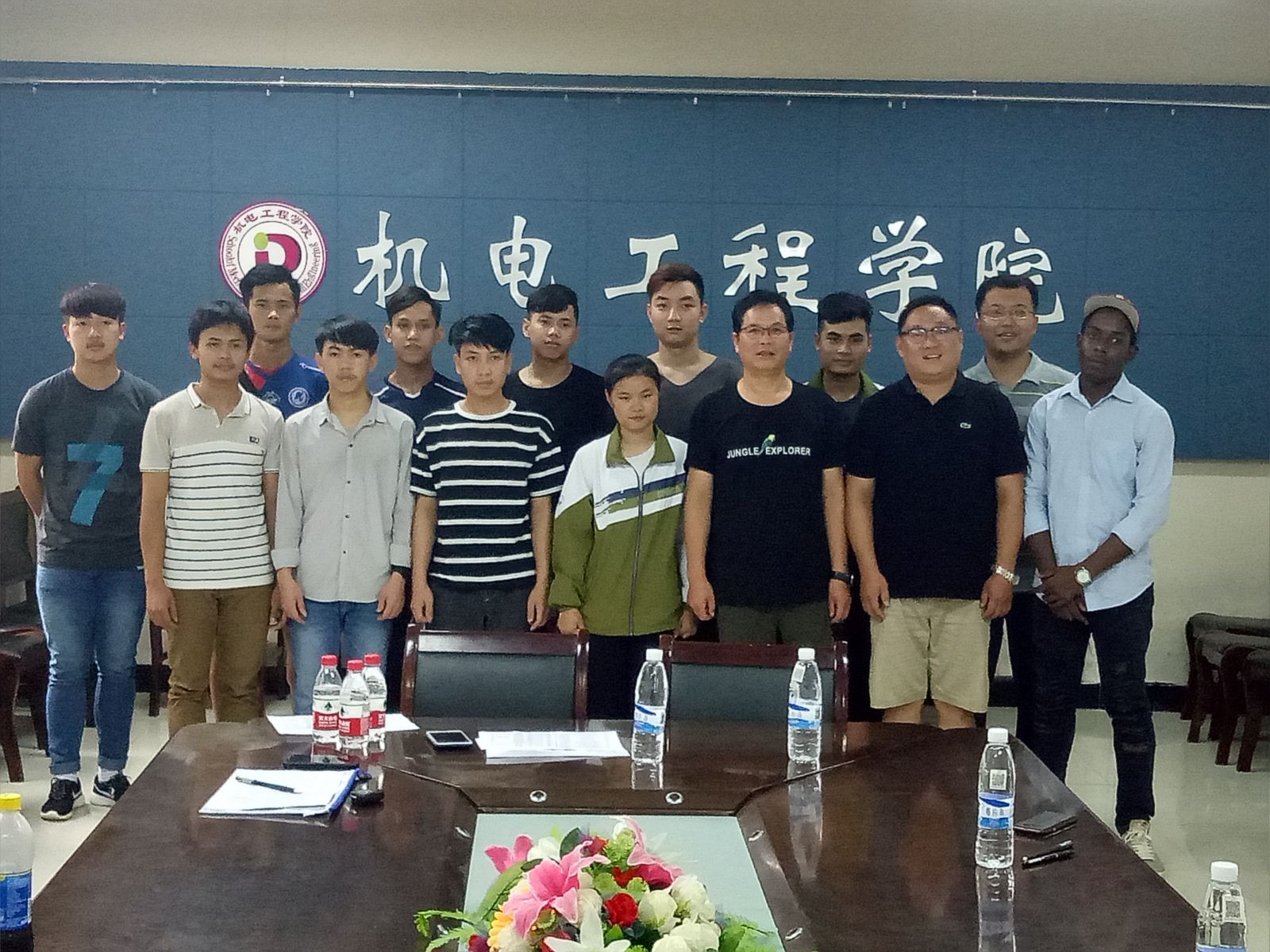 6月28日上午,由国际交流学院国际教育科科长崔廷峰带队,在机电工程学院会议室与学院领导进行了见面交流活动,来自老挝、科摩罗、柬埔寨11名留学生正式成为机电工程学院大家庭中的一员。见面会上,机电工程学院李志球副院长对留学生的到来表示热烈欢迎,并介绍了学院的基本情况。学院领导及专业主任,希望留学生们能尽快融入到机电学院的学习生活中。专业主任戚海永、蒲新征、黄继战介绍了机电、电气、汽修专业的学习内容及学习任务,并对留学生专业知识和技能的学习提出了要求。