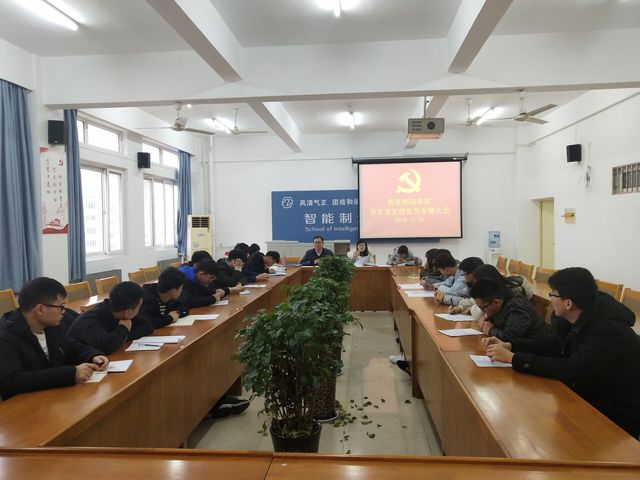 12月5日下午3:00,智能制造学院学生支部在智能制造学院会议室召开全体学生党员大会,主要议题是发展唐晟哲、张绪、李子睿、胡志阳、张可、周仔航、徐亚臣、惠磊、马博9名学生为预备党员。主要目的是为中国共产党输入新鲜血液,充分发扬党员的民主权利,使党员在本支部发展党员工作过程中充分表达个人意愿,真正保障新党员是严格按照党员标准,从突出的入党积极分子和培养对象中选拔的最好人选,确保新党员质量。参加今天会议的为学生支部全体党员。此次大会应到会的正式党员7人,出席会议的6人,有表决权的正式党员人数超过应到会人数的一半,符合党章规定。会议经过个人宣读志愿书、入党介绍人介绍个人情况、正式党员投票、宣读大会决议、本人表态等过程,唐晟哲、张绪、李子睿、胡志阳、张可、周仔航、徐亚臣、惠磊、马博等9名学生全票通过顺利发展成为预备党员。