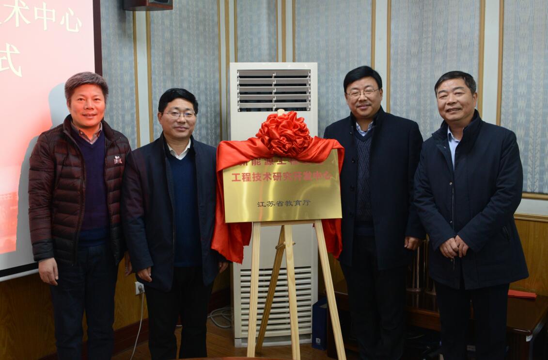 我校沈士德院长、泉山区科技局彭弘局长、徐工汽车郑建新副总经理、徐工环境程磊副总经理共同为我校与徐工集团合作申报的江苏省新能源工程装备工程技术研究开发中心揭牌。