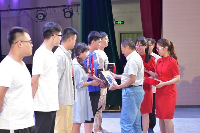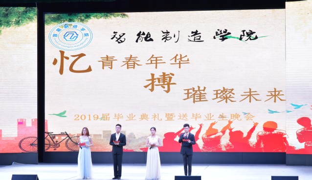 晚会伊始,151amjs澳金沙门仇文宁院长致辞,肯定了毕业生在三年中取得的优异成绩,同时也表达了对广大学子殷切的希望和美好的祝福。随后,优秀毕业班班主任王连洪老师、优秀毕业生代表仇新宇分别做了发言。此次典礼表彰了毕业生当中的优秀学子,主要是优秀学生干部、优秀社会实践学生团队、技能大赛获奖者及创新创业优秀个人等。晚会中间,穿插了精彩的文艺节目。其中最后一个《毕业歌》全场合唱,全体毕业班辅导员上台,为毕业生代表佩戴校友徽章、赠送纪念本,同时毕业生代表为每一个老师送上鲜花,相互拥抱合影留念。智能制造2019届毕业典礼暨送毕业生晚会在感动和激动的氛围中圆满结束。