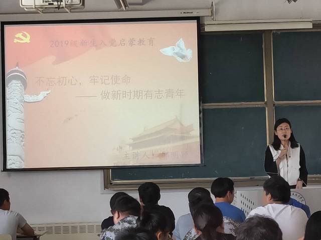 邵明颖老师结合中国共产党党史讲授了《不忘初心牢记使命——做新时期有志青年》的入党启蒙课。首先邵老师将入队、入团、入党作为一个人政治生涯当中最重要的三件大事启发同学们的政治自觉同时回顾了入队、入团、入党的场景和宣誓誓词,提高同学们的政治意识,并告诉大家“入党是人一生的追求”。接着,邵老师介绍了中国共产党的性质以及指导思想,党的现阶段任务,和成为一名共产党员的条件,解释了为何大学生要积极加入中国共产党,强调加入中国共产党一定要端正入党动机。最后,邵老师介绍了学生支部党员发展工作以及如何书写入党申请书和思想汇报。课后很多学生纷纷表示近期要认真书写入党申请书,希望老师给予指导和帮助。