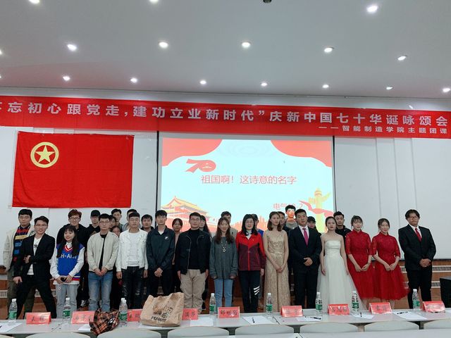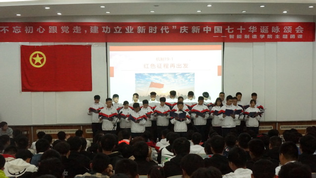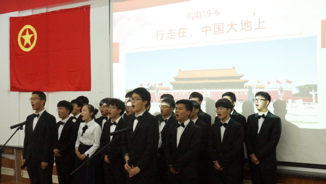 本次团课采取了以咏诵会的形式弘扬爱国主义精神,祝福新中国成立七十周年华诞。由大一各团支部组织咏诵节目,选送了12支代表队参赛。各班同学通过朗诵爱国主义诗歌,表达了自己对祖国的深爱,歌颂了七十年的艰苦奋斗的历程。比赛过程中,同学们声音高亢、激情四射,展示了新时代奋发图强的青年大学生。最后经过激烈的评比,机电19-6代表队《行走在,中国大地上》、机制19-1代表队《红色征程再出发》获得了一等奖。