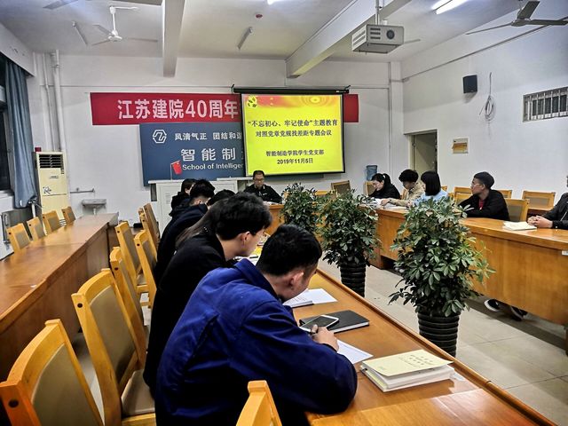 11月5日晚7:00,151amjs澳金沙门学生党支部“不忘初心、牢记使命”主题教育对照党章党规找差距专题会议在第一实训楼会议室召开。151amjs澳金沙门学生党支部的同学与老师对照《中国共产党章程》《关于新形势下党内政治生活的若干准则》《中国共产党纪律处分条例》,深入查找自身存在的问题和差距,认真检视剖析、逐条作出回应,见人见事见思想,以立行立改、真改实改体现践行初心、担当使命。