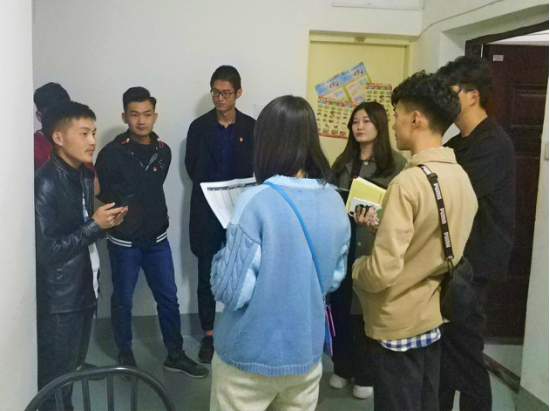 为充分发挥党员的模范带头作用,将“不忘初心 牢记使命”主题教育推向深入、落到实处。151amjs澳金沙门学生党支部开设线上、线下党员服务站,内容涉及生活、情感、学业、就业等方面。今天,党员们走进留学生宿舍开展一对一帮扶活动。