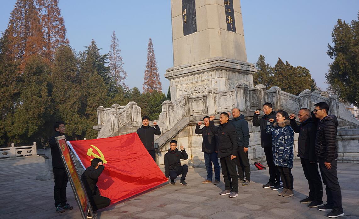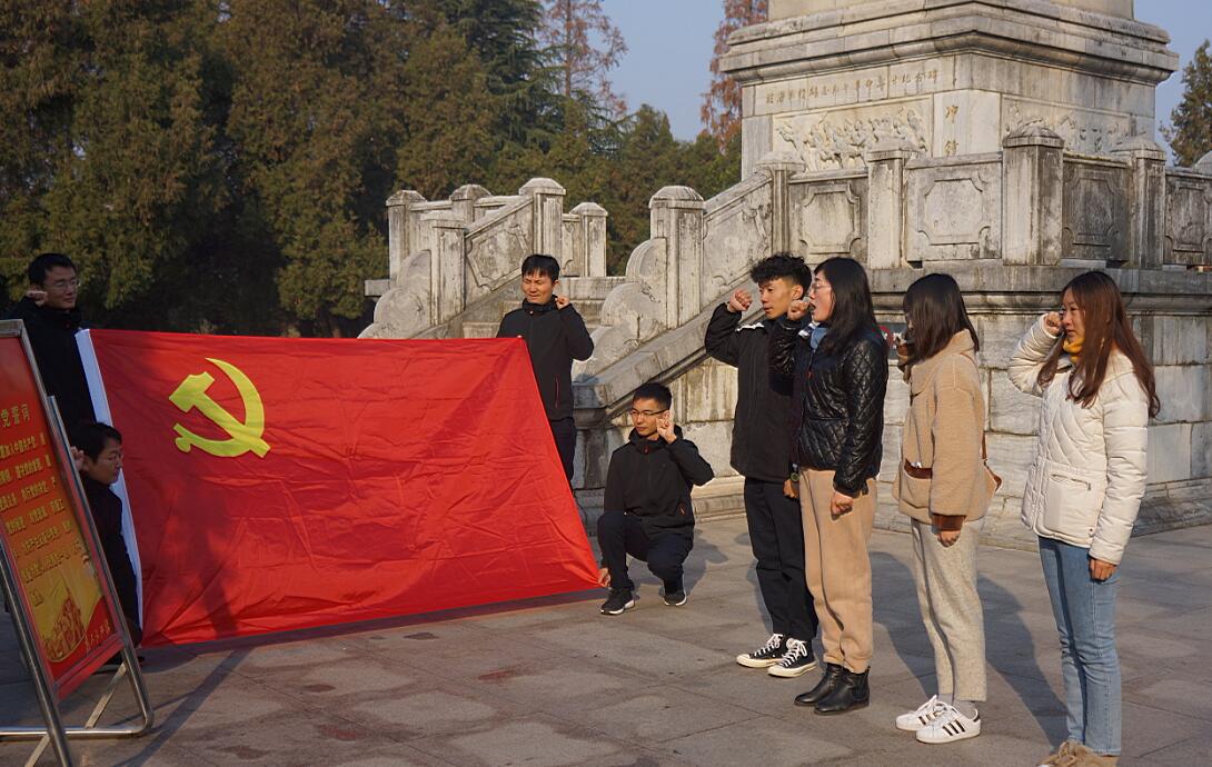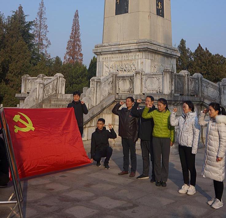 8日上午9时,刘盛贤书记带领师生党员一行来到淮海战役碾庄圩战斗纪念馆。进馆前,全体党员在革命烈士纪念碑和鲜红的党旗下重温入党誓词,进一步加强党员党性教育,增强了党员守初心、担使命的政治意识。馆内参观过程中,同志们聆听感悟革命先烈事迹,缅怀革命先烈的丰功伟绩,被革命先辈一往无前、决战决胜的坚定信念和崇高精神深深打动和洗礼。