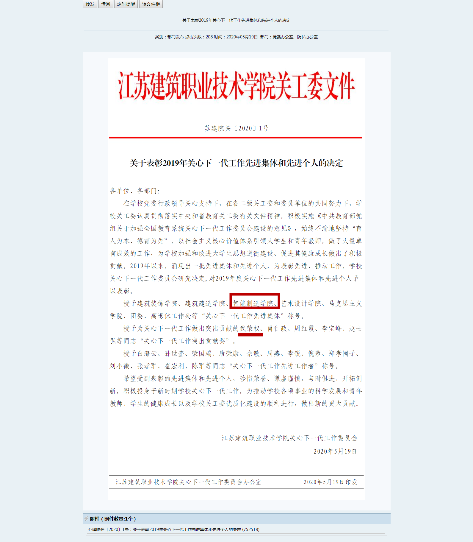 热烈祝贺151amjs澳金沙门关工委获得校“关心下一代工作先进集体”荣誉称号!
