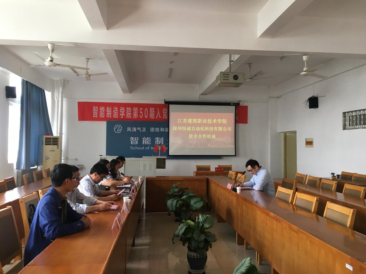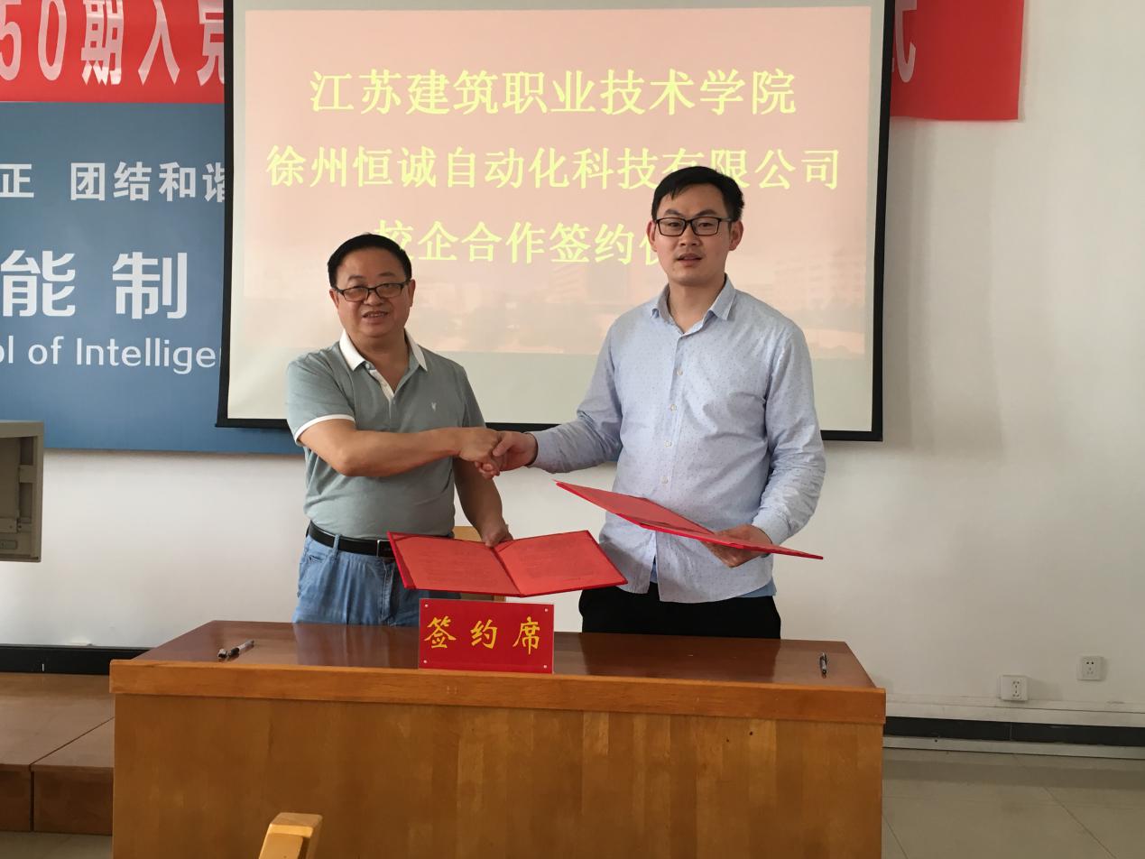 2020年5月20日上午11时,在第一实训楼151amjs澳金沙门会议室,徐州恒诚自动化科技有限公司和151amjs澳金沙门举行了校企双方合作签约仪式。徐州恒诚自动化科技有限公司总经理吴云、我校校企合作处处长娄志刚、副处长白飞、151amjs澳金沙门党总支书记刘盛贤、副院长付红、机械专业主任黄继战、办公室主任胡兵等共同参加了仪式,仪式由刘盛贤书记主持。