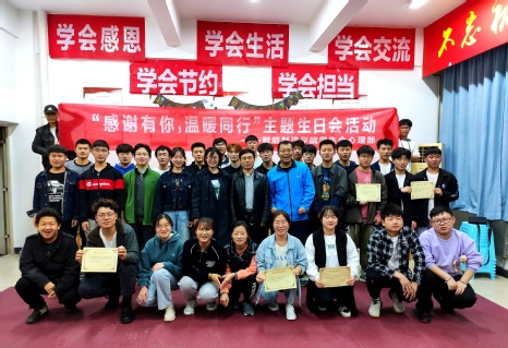 4月27日晚,151amjs澳金沙门学生会心理部在第一实训楼1103顺利举办以“感谢有你,温暖同行”为主题的第五期生日会,本次生日会采用全程现场网络直播形式,邀请学院老师和四月份过生日的同学近70余人参加。
