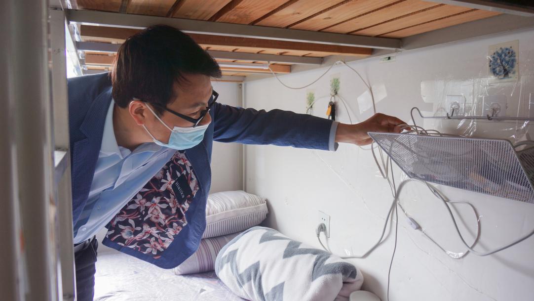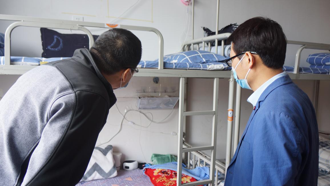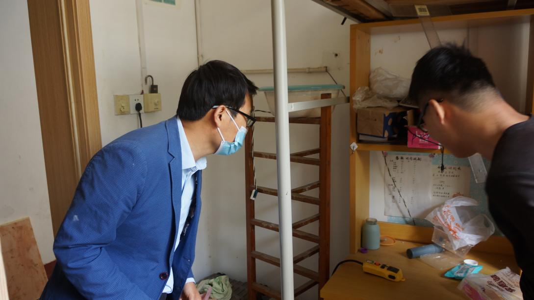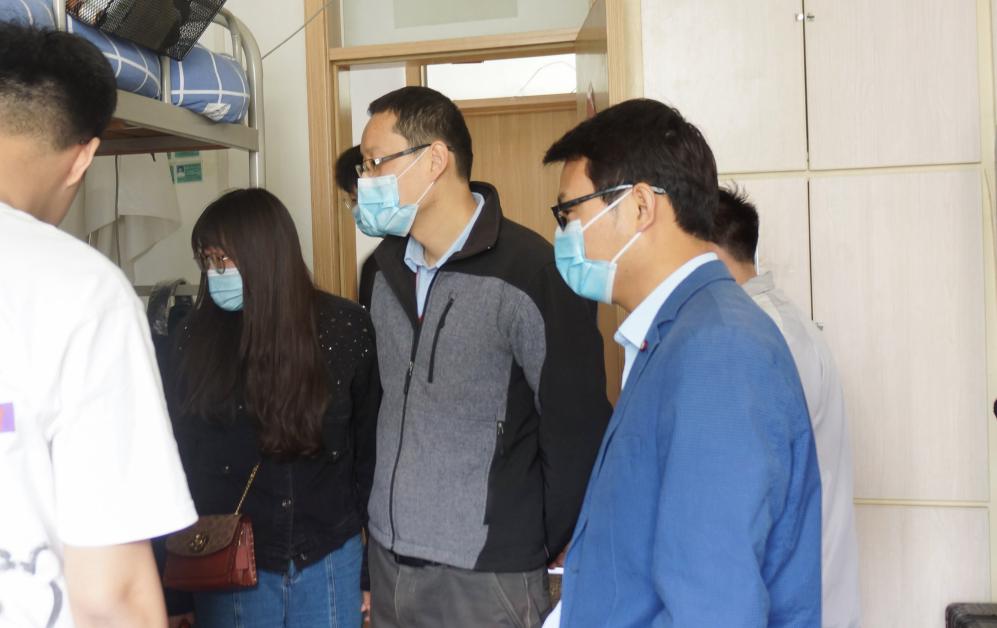在检查的同时,也积极关心同学们的衣食住行、学习等各方面的情况,全面了解学生诉求,叮嘱大家要增强安全防范意识,合理安排线上上课期间的生活。