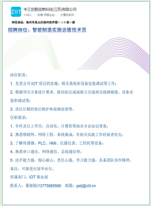 中工创智信息科技(江苏)有限公司招聘信息