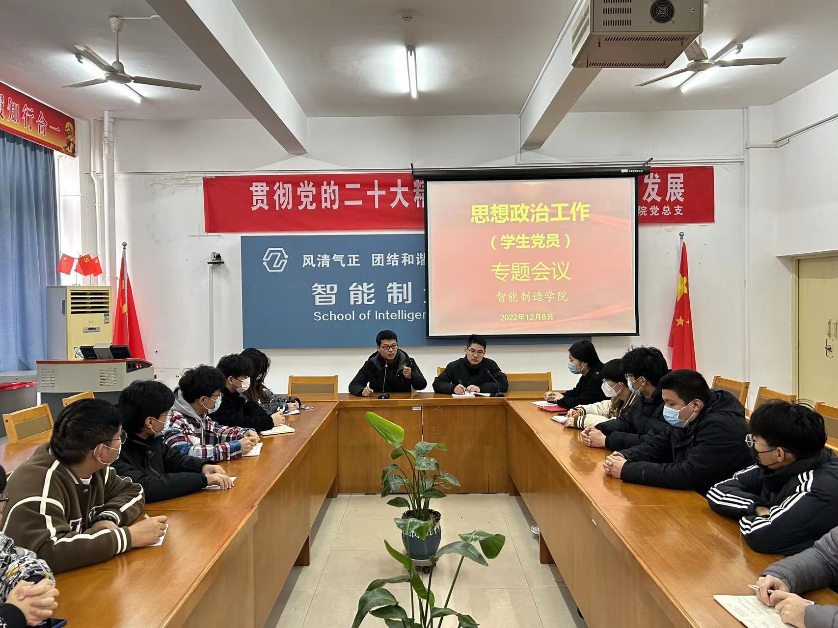 12月8日上午,151amjs澳金沙门学生党支部在第一实训楼504召开思想政治教育专题会议,党支部书记胡兵同志作了题为《提高政治意识,切实履行党员义务》报告,全体学生党员参加了会议。会议由教师党员相华文主持。