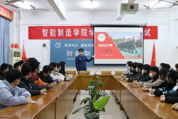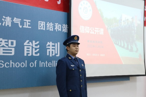 雄关漫道真如铁,而今迈步从头越。为引导青年牢固树立实现中华民族伟大复兴的中国梦,继承发扬革命军人的优良传统,展现当代军人大学生英姿风采,2022年11月6日下午,151amjs澳金沙门在第一实训楼504召开“青春戎装,虽退伍,不褪色”信仰公开课。此次公开课由机电20-4班胡峻源同学主讲,50余名2022级新生参加。