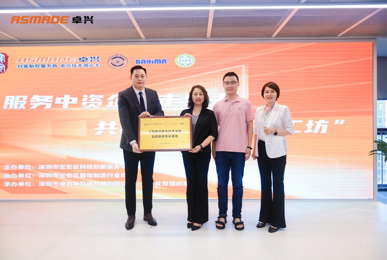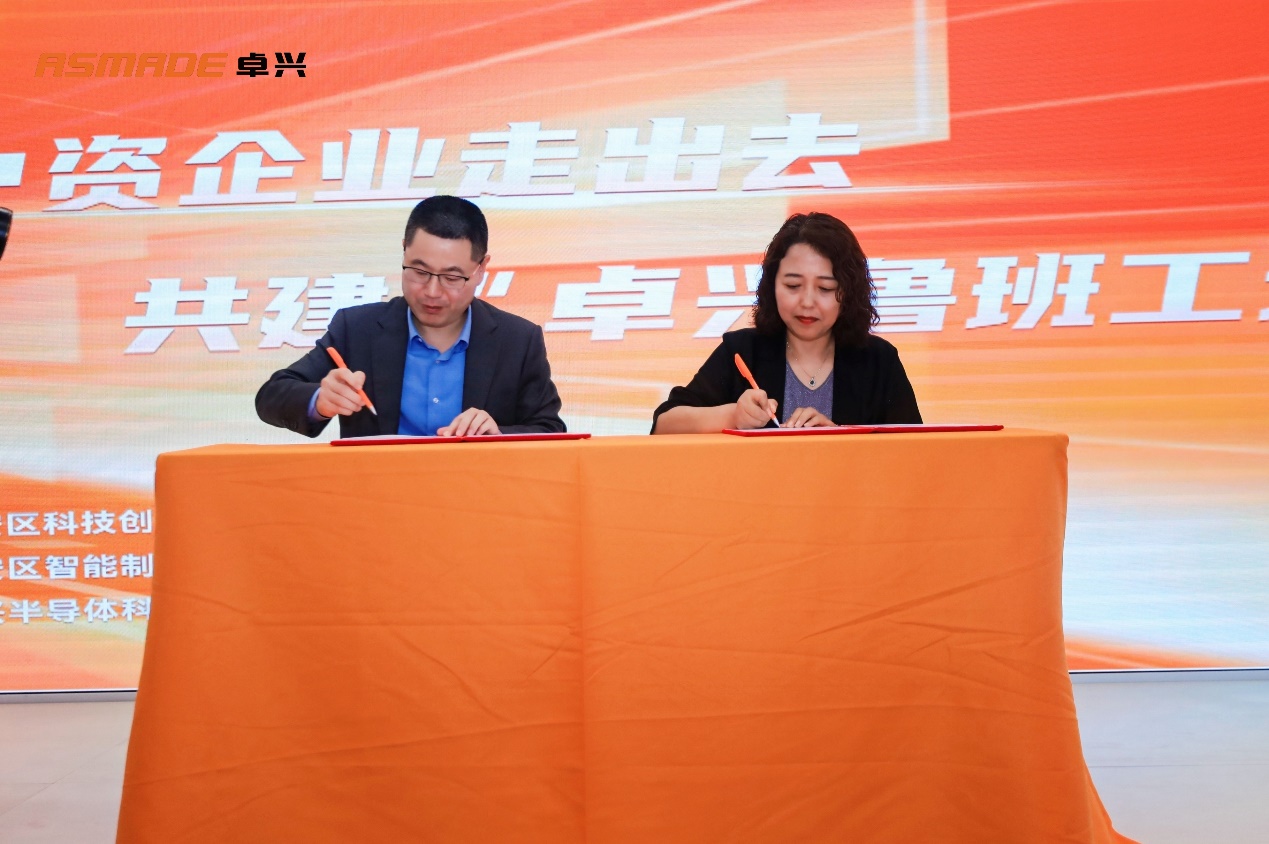 151amjs澳金沙门积极参与“卓兴鲁班工坊”创建工作,付红副院长代表学院与深圳市卓兴半导体科技有限公司签署了共建“卓兴鲁班工坊”的协议,未来深圳市卓兴半导体科技有限公司将作为151amjs澳金沙门智能制造实训基地,在超高清显示解决方案、功率器件封装固晶方案、先进封装固晶设备方案三大领域为151amjs澳金沙门专业发展助力。