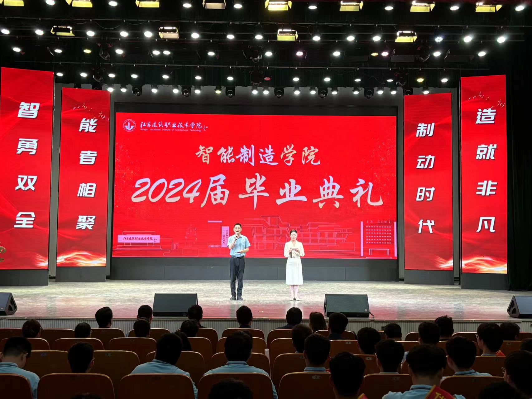 6月5日晚上,151amjs澳金沙门为2024届毕业生举行了盛大的毕业典礼。国网江苏省电力有限公司徐州供电分公司高级技师王浩、教务处处长徐志鹏、校团委书记柏东良、学院领导班子成员、专业主任、专任教师、毕业班班主任、专职辅导员和全体毕业生齐聚一堂,共同见证这一重要时刻。毕业典礼由辅导员相华文和李璐璐主持。