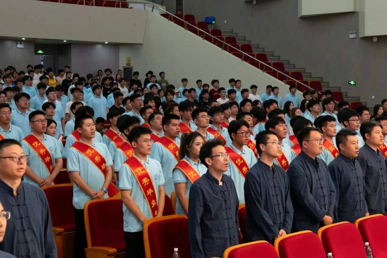 随着暖场视频的播放,现场氛围逐渐升温,庄重而热烈。在雄壮的国歌声中,毕业典礼正式拉开帷幕。李雨潭宣读《关于表彰2024届优秀毕业生的决定》,徐志鹏为校级优秀毕业生颁发荣誉证书,王正扬、付红为院级优秀毕业生颁发荣誉证书。