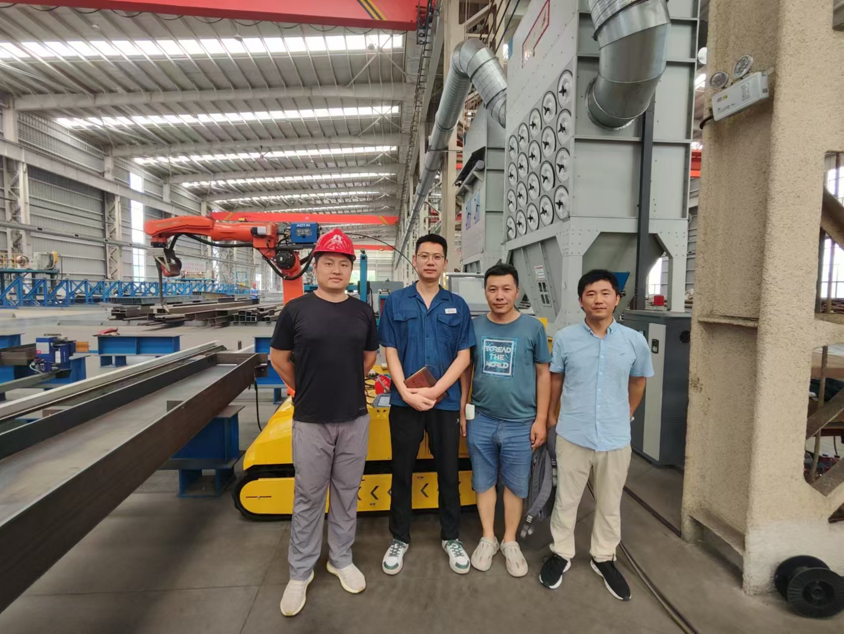 2024年7月25日,151amjs澳金沙门王勇老师、赵戈老师、胡海涛老师一行前往徐州鑫科机器人有限公司洽谈科研合作与学生实习实训工作事宜。据悉徐州鑫科机器人有限公司是一家在特种机器人领域表现出色的企业,公司专注于特种机器人的研发、生产与销售,以先进的技术和可靠的产品质量,为客户提供高效的机器人解决方案,在行业内具有较高的知名度和影响力。王老师一行洽谈了关于自行走焊接机器人的技术难点,即高精度的定位测量技术需求,并一道前往机器人的示范企业-徐州八方钢结构集团进行了现场考察和需求研讨。最后,就机器人定位技术合作和学生的实习工作,达成合作意向。