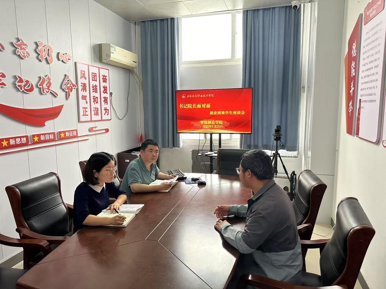 随后进入座谈环节,为了更全面、深入、细致地了解每位学生的具体情况和实际需求,王正扬和张志荣与每一位同学进行耐心的逐一座谈。他们认真倾听学生们在求职过程中遇到的具体问题、思想困惑,以及家庭经济状况对就业选择造成的影响。针对每位同学的自身特点和面临的困境,两位老师进行深入分析,提出极具针对性的个性化指导意见和切实可行的帮扶策略。